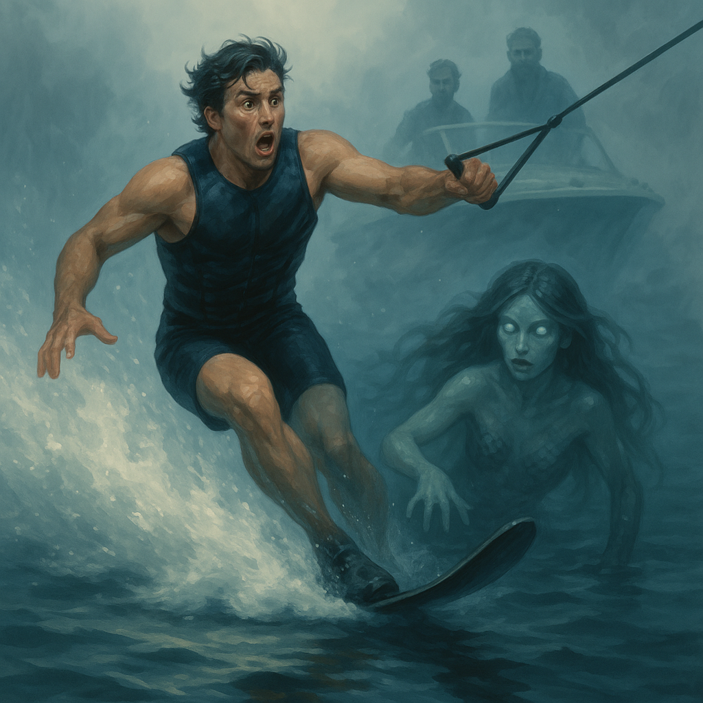 Then, without warning, the tow rope snapped taut mid-turn — not from Wake Razor falling, but from something pulling him back.